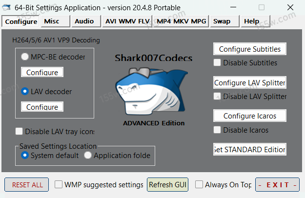• 内置 Win7DSFilterTweaker (系统视频滤镜配置器)功能。