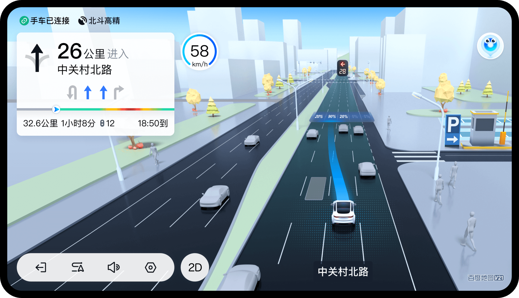 百度地图V21尝鲜版支持车道级导航,全国都能开;红绿灯实时读秒,驾驶心中有数;手车互联,实时流转,双屏联动;内存占用低,运行流畅,感兴趣的车友可以下载试试~
