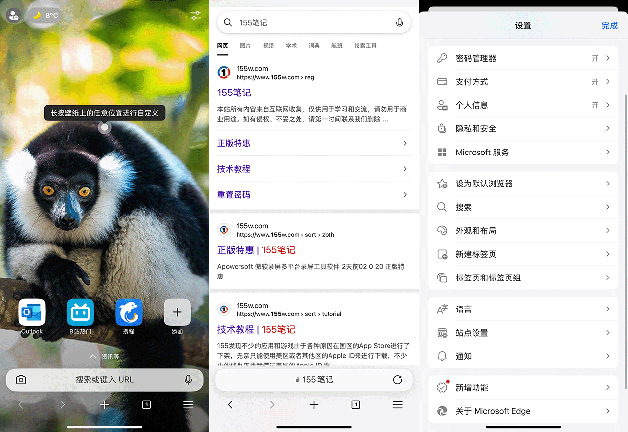 Microsoft Edge for Android 微软Edge安卓浏览器特别版,微软Edge浏览器基于谷歌Chromium内核,与谷歌浏览器不同的是,国内无需科学上网就能同步所有首页导航、收藏夹、Cookies、历史记录等数据到移动端。Microsoft Edge(微软“前沿”)网络浏览器让您每次浏览网站时都快速、私密、又有效率。您该可以要求更多,而无需将就了。隐私性更强。给您更多控制。效率更高。提供更多价值。从手机、到电脑、到其他登入的设备,您随时随地都可以浏览网站,尽享无缝衔接的体验。有防追踪、AdBlock(广告拦截)、InPrivate(隐私)浏览和 Microsoft Bing 搜索引擎里的 InPrivate(隐私)检索各种功能替您把关,保护您在网上的隐私。有条不紊地把网站整理归类,更容易随时找到、查看和管理各种内容。请用这个兼容性和性能都世界一流、附带各种新功能的浏览器来上网浏览吧。只要有 Microsoft Edge 这一个互联网浏览器就可以帮您打点一切。
