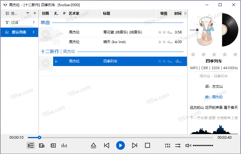 – ESLyric(歌词插件)、播放统计信息、ASIO 输出、WASAPI 输出