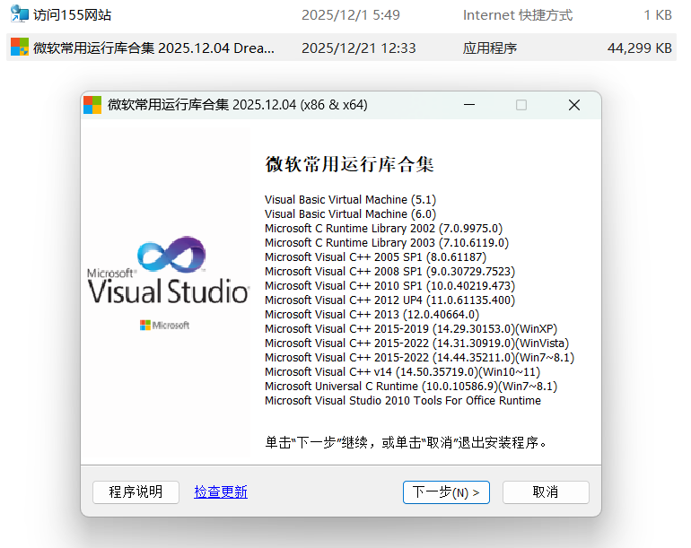 系统运行库就是支持大部分软件运行的基础,Windows微软常用运行库合集,此微软系统运行库集合包整合了目前最新的、最常用的VC运行库版本,傻瓜式一键全部安装,方便操作,装机必备神器。