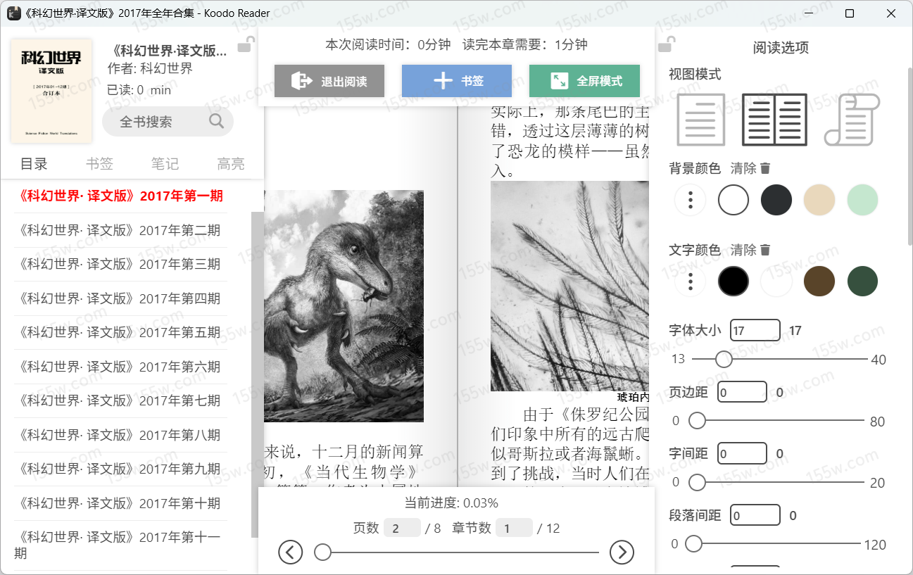 • 阅读界面支持双页模式,单页模式和滚动模式