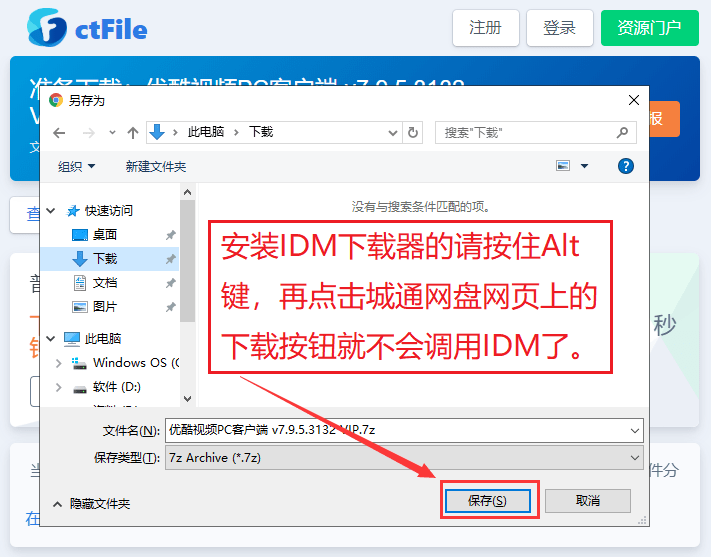 如果安装了IDM的朋友下载城通网盘文件的时候,按住Alt键,再点击城通网盘网页上的下载按钮就不会调用IDM了。