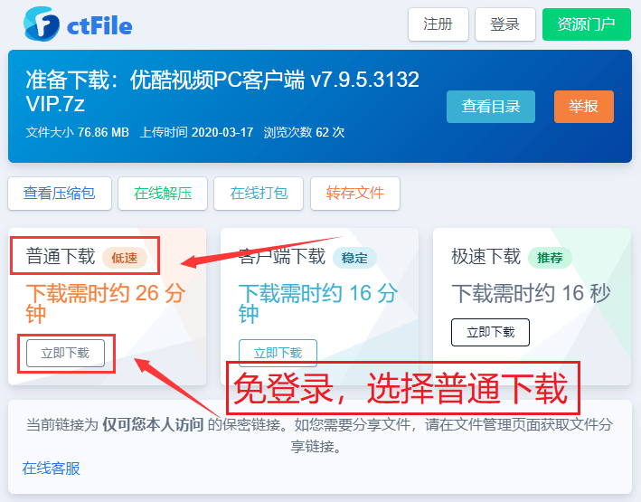 3、根本就不需要充值会员下载客户端就可以下载诚通网盘的文件,只是里面的暗装对于首次接触的朋友来说下载有点困难,按照上面的操作我们就可以成功的下载诚通网盘的文件了。